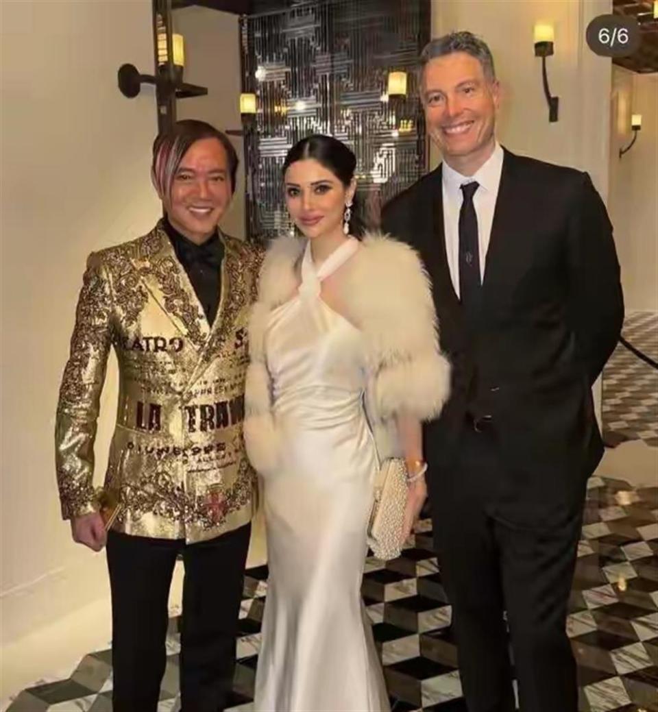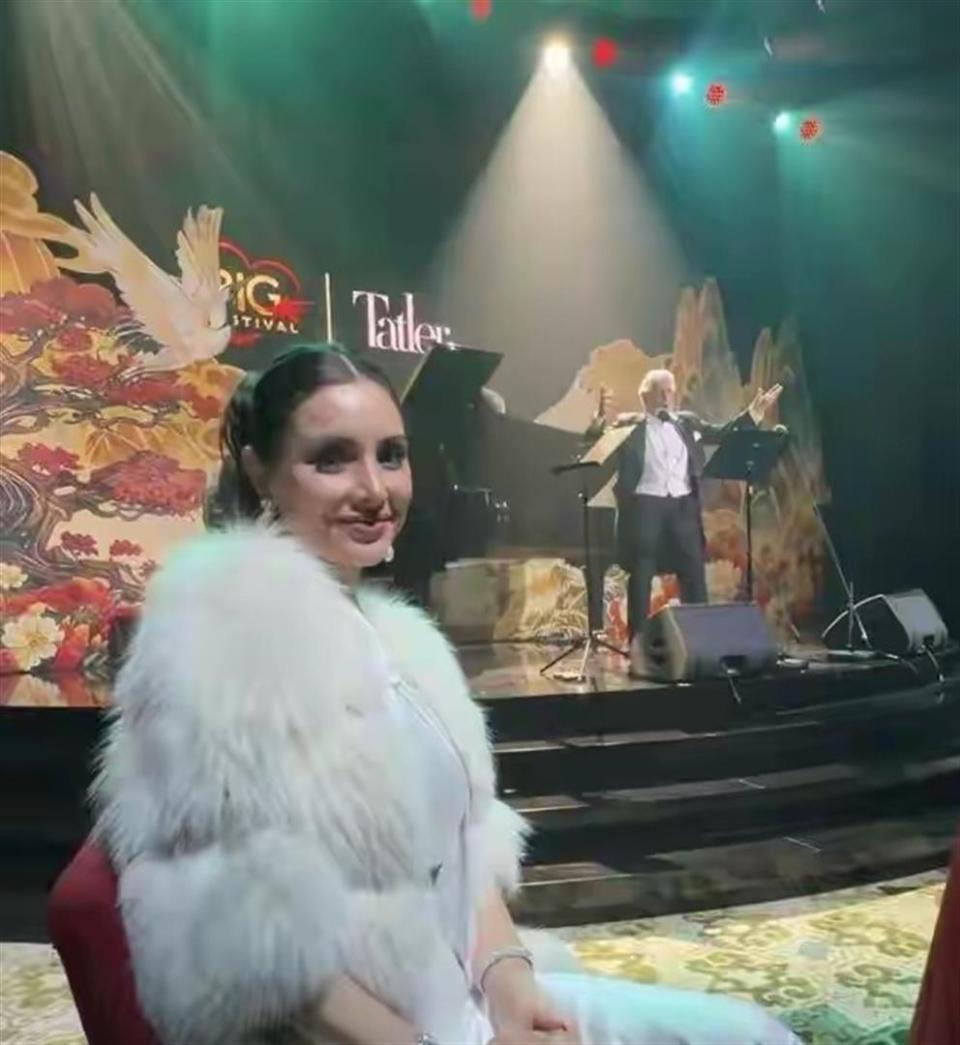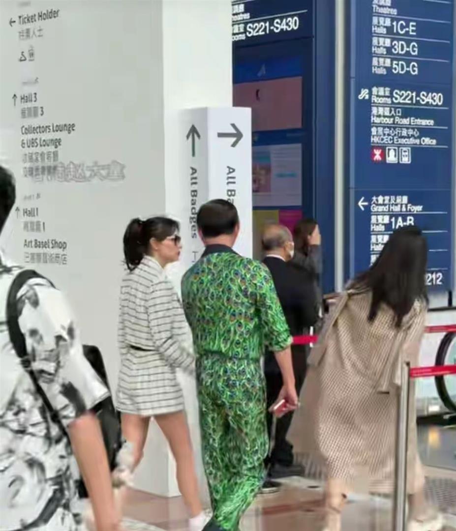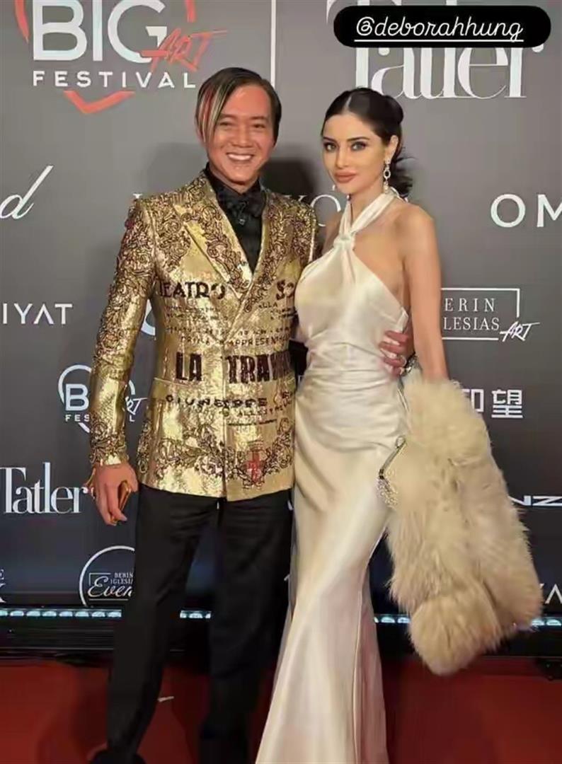 有人拍到他俩在晚宴上的画面,洪永时换了一套金色印花西装外套,黛博拉穿了白色晚礼裙配皮草披肩。 他在场内忙着和村上隆这些艺术大师交流合影,她坐在席上安静看表演。