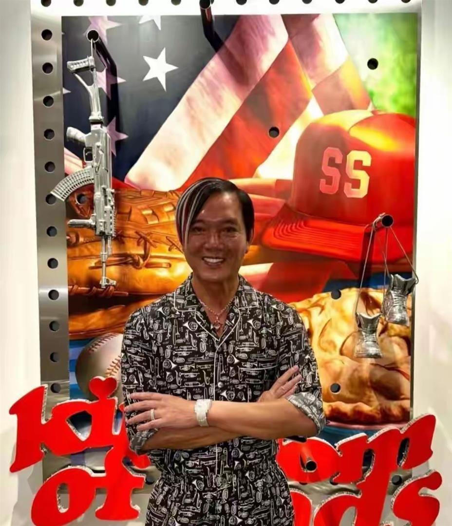 就在昨天,香港巴塞尔艺术展现场,66岁的洪永时又出现了。